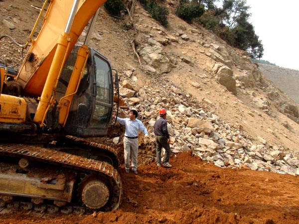 胡鴻煌副總經理現場指導洞口水庫除險加固工程圍堰施工