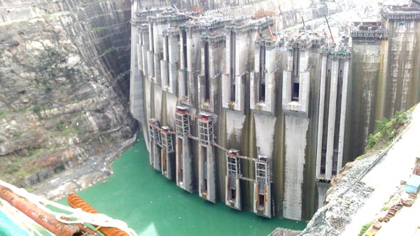 集團(tuán)資訊溪洛渡水電站位于四川省雷波縣和云南省永善縣接壤的金沙江峽谷段,是金沙江水電基地下游四個(gè)巨型水電站中最大的一個(gè),以發(fā)電為主,兼有攔沙、防洪和改善下游航運(yùn)等綜合效益的大型水電站。溪洛渡水電站樞紐由攔河壩、泄洪、引水、發(fā)電等建筑物組成。攔河壩為混凝土雙曲拱壩,壩頂高程610米,最大壩高278米,壩頂弧長698.07米;左、右兩岸布置地下廠房,各安裝9臺水輪發(fā)電機(jī)組,單機(jī)容量77萬千瓦,電站總裝機(jī)1386萬千瓦,多年平均發(fā)電量571.2億千瓦時(shí)。裝機(jī)容量與原來世界第二大水電站——伊泰普水電站(1400萬千瓦)相當(dāng),是中國第二、世界第三大水電站。