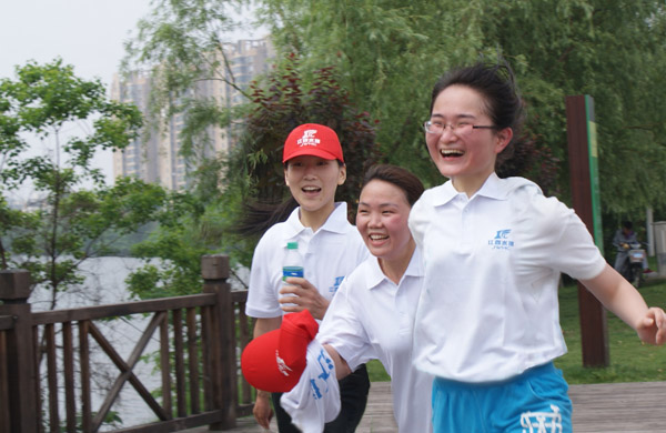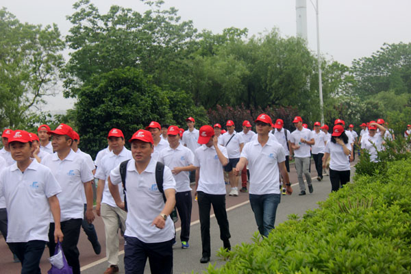 活動開始前,公司工會主席史偉作了簡短的動員講話,上午8:30健步走活動正式啟動。在工作人員的引導下,員工們邁著矯健的步伐大踏步的行走在美麗的艾溪湖湖畔?;顒又?,大家精神抖擻、意氣風發,你追我趕、揮汗如雨,最后全部順利抵達終點,全程共計11公里。