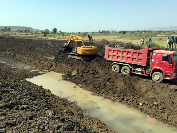 部長Motuma Mekesa一行于上午抵達項目施工現場,隨后對項目渠首及總渠段進行參觀考察。埃塞公司副總經理兼項目經理黃生寶向部長介紹了建設項目概況及項目施工進度,就項目設計、征地等提出了建設性意見和建議,表達了以“服務社會”為宗旨,與各方一道以最快的速度推進項目建設的積極態度。項目經理黃生寶表示,我們將秉承我公司“健行天下,堰筑大同”的精神,以最好的質量,最快的速度保證項目的實施。部長先生對我們的現場建設以及積極的態度表示了肯定,要求設計、征地以及業主單位積極與施工單位合作,保證項目施工質量,加快項目施工速度。同時,相信我公司能堅定信心,積極應對困難與挑戰,在有限的時間內圓滿完成任務。