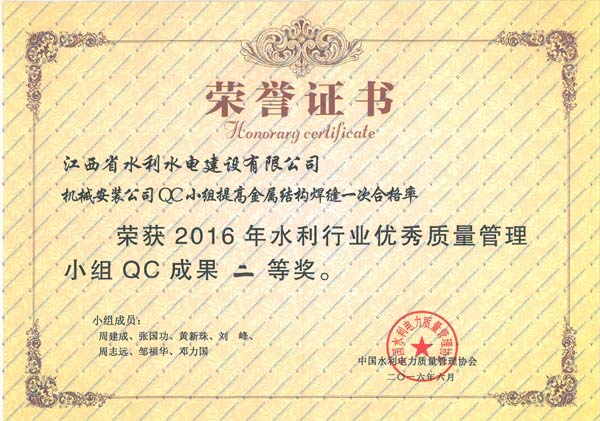 集團(tuán)資訊2016年6月20日至24日,中國(guó)水利電力質(zhì)量管理協(xié)會(huì)水利分會(huì)在安徽省安慶市,舉辦了2016年水利行業(yè)優(yōu)秀質(zhì)量管理小組成果發(fā)表會(huì),并在本次發(fā)表會(huì)上發(fā)布了156項(xiàng)QC成果。中國(guó)水利電力質(zhì)量管理協(xié)會(huì)水利分會(huì)組織評(píng)審專家,對(duì)發(fā)表的QC成果進(jìn)行了現(xiàn)場(chǎng)評(píng)審,對(duì)經(jīng)評(píng)審獲得一、二等獎(jiǎng)的單位進(jìn)行了表彰。本次成果發(fā)表會(huì)上,我公司共有3項(xiàng)QC成果獲一等獎(jiǎng),兩項(xiàng)QC成果獲二等獎(jiǎng),成績(jī)較往年有較大幅度提高。