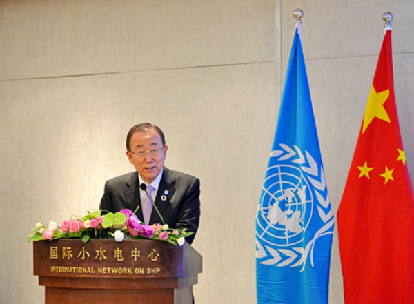 7月9日上午,聯(lián)合國秘書長潘基文出席了由聯(lián)合國開發(fā)計劃署、聯(lián)合國工發(fā)組織、國際小水電中心共同舉辦的“應(yīng)對氣候變化南南合作主題會”,并發(fā)表重要講話,會議在國際小水電中心舉行。聯(lián)合國副秘書長吳紅波、中國駐聯(lián)合國代表劉結(jié)一大使等陪同出席。