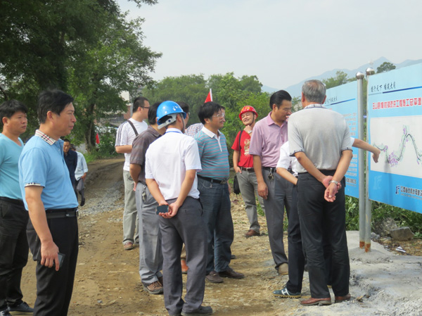 為進(jìn)一步落實(shí)8月8日全省水利建設(shè)推進(jìn)會(huì)精神,2014年9月21日上午,以水利廳副廳長(zhǎng)廖瑞釗為組長(zhǎng)的督查組來(lái)到我公司承建的上饒市玉山縣樟村鎮(zhèn)防洪工程現(xiàn)場(chǎng)檢查指導(dǎo)工作。督查組一行深入工地全線施工現(xiàn)場(chǎng),每到一處都詳細(xì)詢問(wèn)各參建單位情況,了解工程的投資規(guī)模、設(shè)計(jì)方案及進(jìn)度、質(zhì)量控制情況。督察組對(duì)樟村鎮(zhèn)防洪工程施工質(zhì)量尤其是工程外觀表示非常滿意。在看了工地整齊規(guī)范的五圖一牌及公司形象宣傳欄后,廖瑞釗副廳長(zhǎng)對(duì)我公司的標(biāo)準(zhǔn)化施工管理給予了高度評(píng)價(jià),還不時(shí)拍照記錄,并要求玉山縣水利局在全縣其他水利建設(shè)工地參照學(xué)習(xí)并加以推廣。在檢查完工地現(xiàn)場(chǎng)后,督察組在樟村鎮(zhèn)政府就防洪工程設(shè)計(jì)、施工、及鄉(xiāng)鎮(zhèn)規(guī)劃召開(kāi)了座談會(huì)。