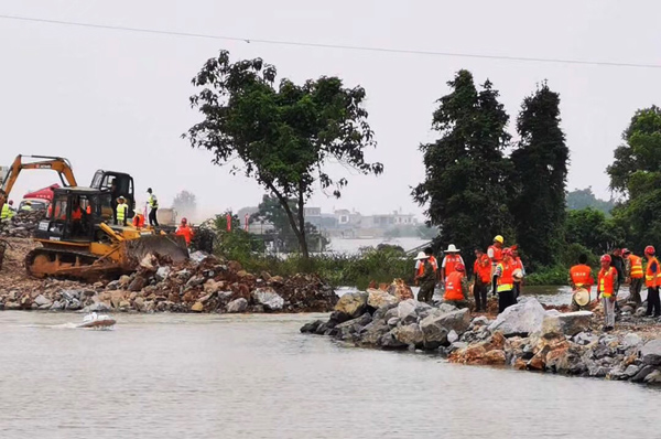 公司技術組專家張周平、王俊華、曾朝文,彭燦華等領導在現場進行技術指導。專家組研究發現,當日水流過大,石料來源缺失,難以立即對決口進行合攏施工。需要待水流平穩,石料來源落實后,才可開始。