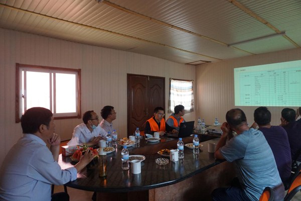隨后,張周平具體查看了軍事學院項目的整體建設情況,詳細詢問了員工生活生產物資等后勤保障工作。座談會上,張周平首先聽取了項目負責人黃飛翔對項目生產經營的工作匯報,詳細了解了項目當前進展、面臨的困難、采取的措施和下一步工作計劃。張周平對項目部在疫情期間積極作為、勇保履約的努力表現給予了充分肯定,并對后期工作開展提出了明確的要求。他強調,一是要嚴格做好疫情防控以及其他疾病或意外事故的預防,時刻將全體員工的身體健康和生命安全放在首位;二是要嚴把質量關,打造精品優質工程,增強公司核心競爭力;三是要推動項目高質高效履約,樹立良好的公司形象,為公司進一步拓展當地市場夯實基礎。