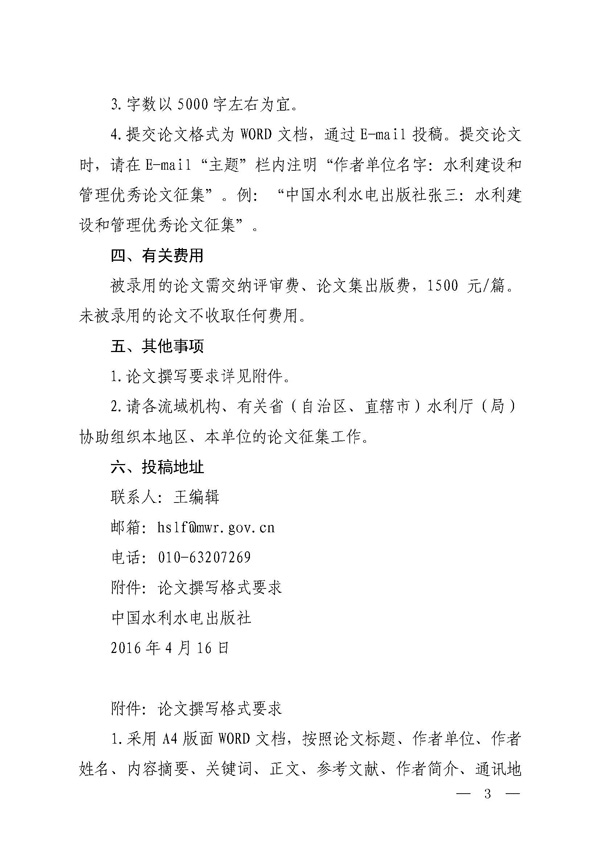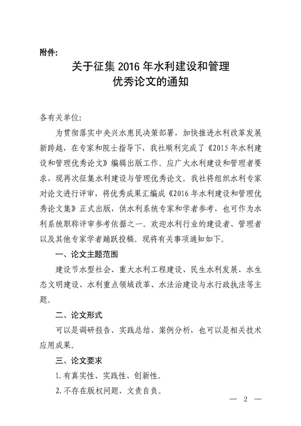 轉發征集2016年水利建設和管理優秀論文的通知